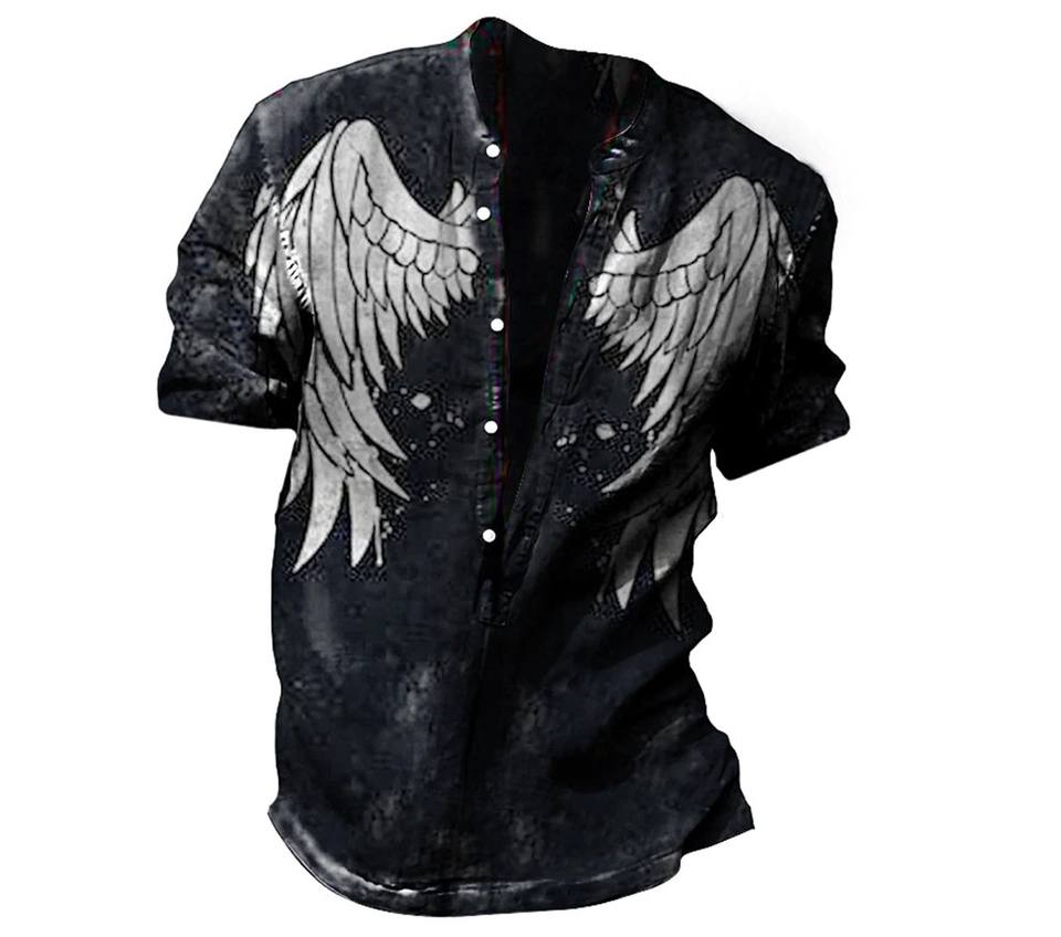 Men Vintage Short Sleeve Oversized Top Tee Shirt Men Male Streetwear New Punk Button V-neck Men's T Shirt Print T Shirts