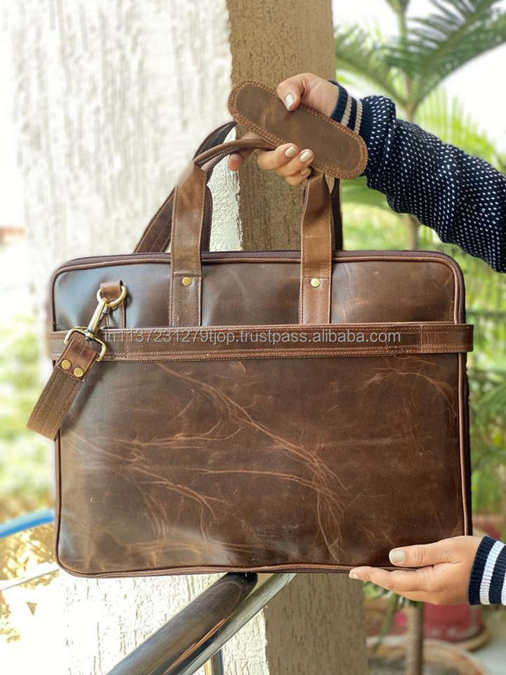 Real Handmade Crunch Leather Laptop Messenger Bags