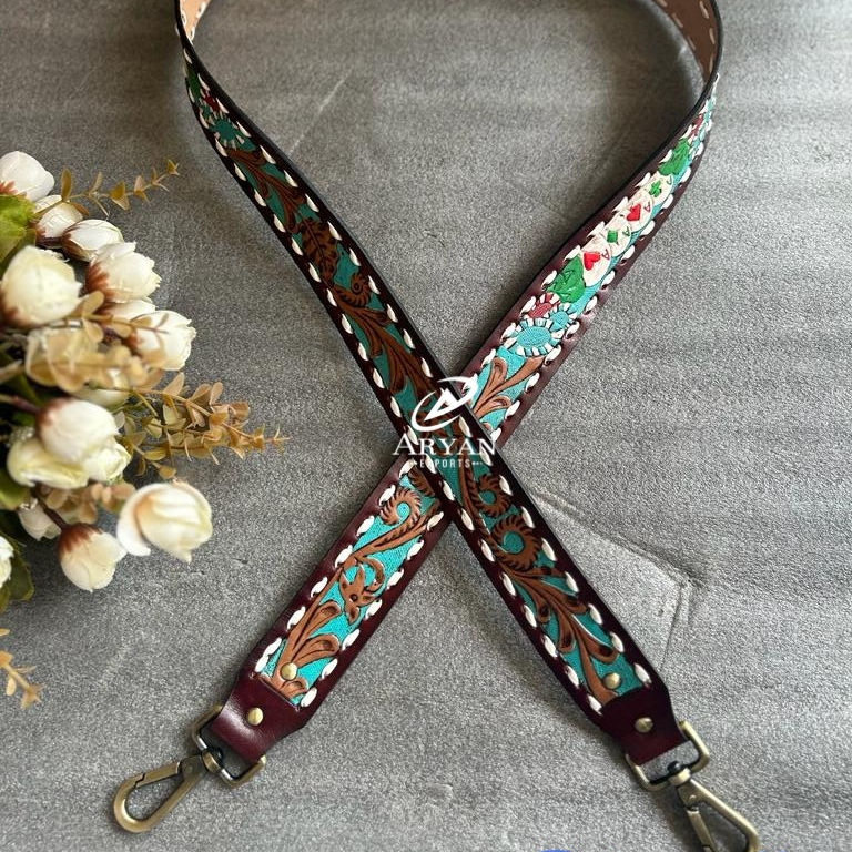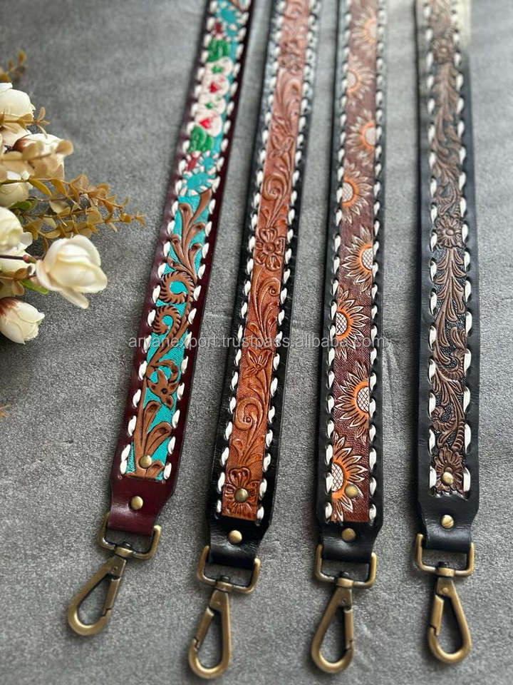 New Real Genuine Leather Hand Painted Replacement Bag Strap Western Personalized Detachable Guitar/ Camera Strap With Brass Snap