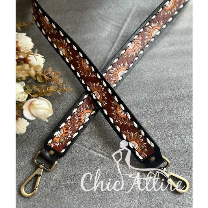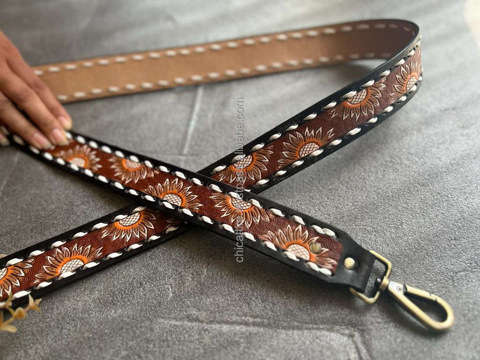 New Real Genuine Leather Hand Painted Replacement Bag Strap Western Personalized Detachable Guitar/ Camera Strap With Brass Snap