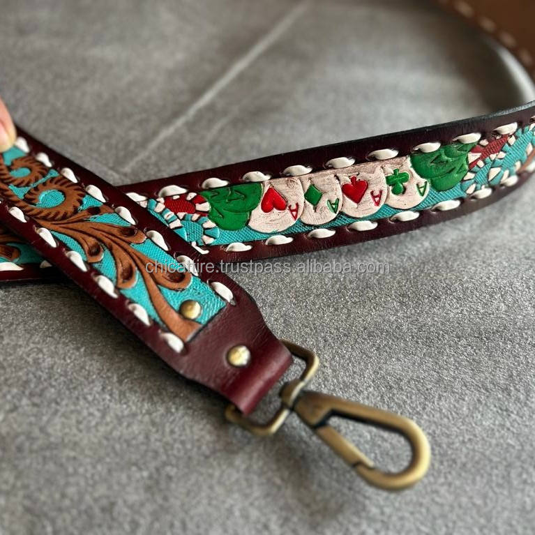 New Real Genuine Leather Hand Painted Replacement Bag Strap Western Personalized Detachable Guitar/ Camera Strap With Brass Snap