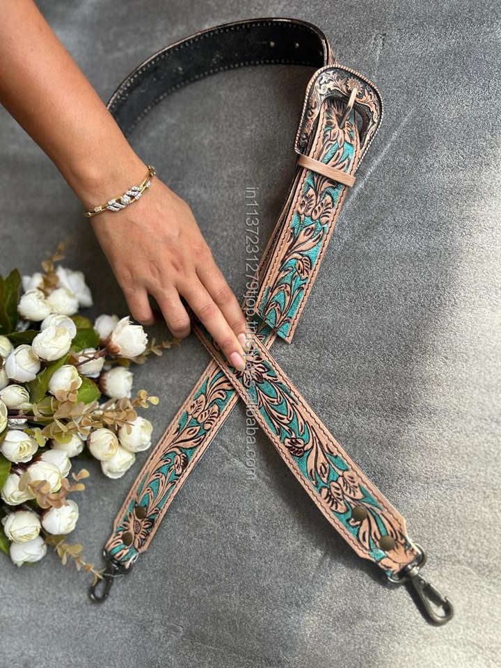 New Real Genuine Leather Hand Painted Replacement Bag Strap With Adjusters Western Personalized Detachable Guitar/ Camera Strap