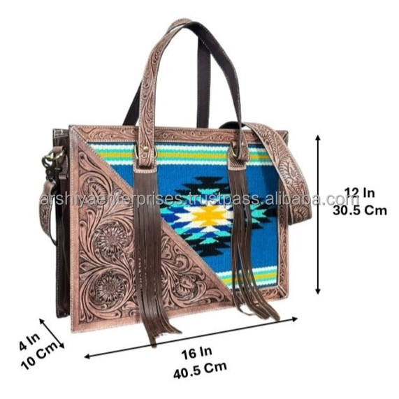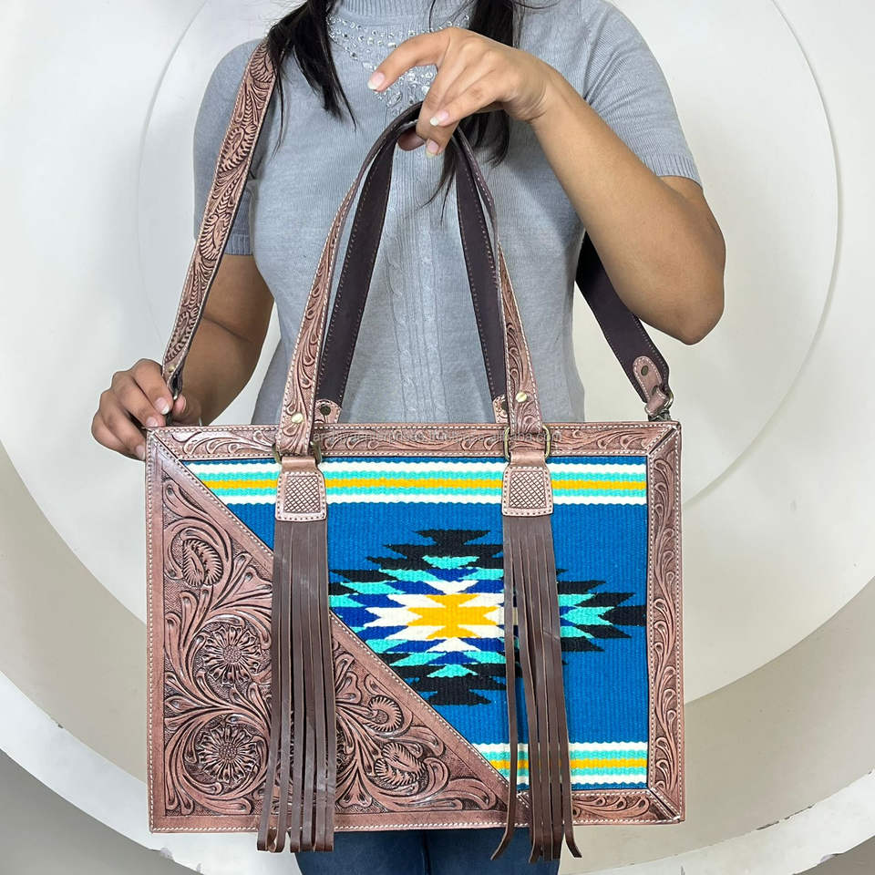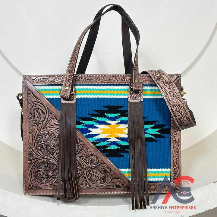 Type:Handcrafted Tooled Aztec Leather Tote Bag