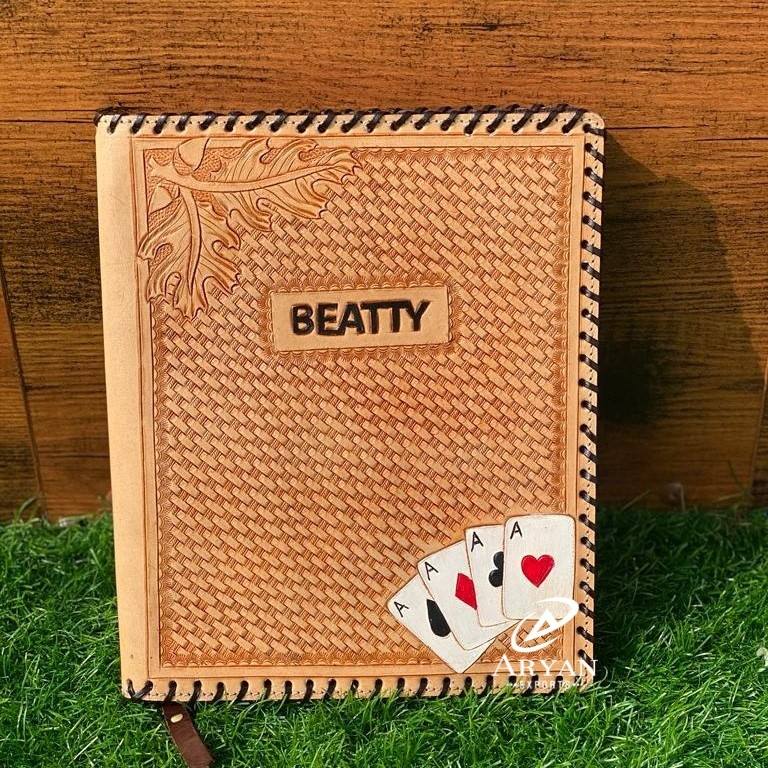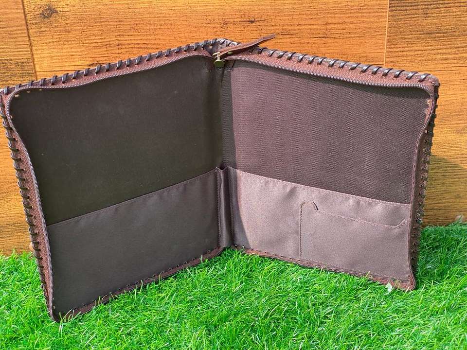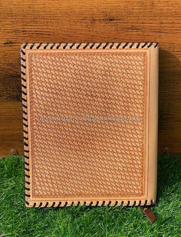 New Real Hand Tooled Extra Large Embossed Leather File Folder Boho Traditional Vintage Leather Travel Long Zip Document Holder