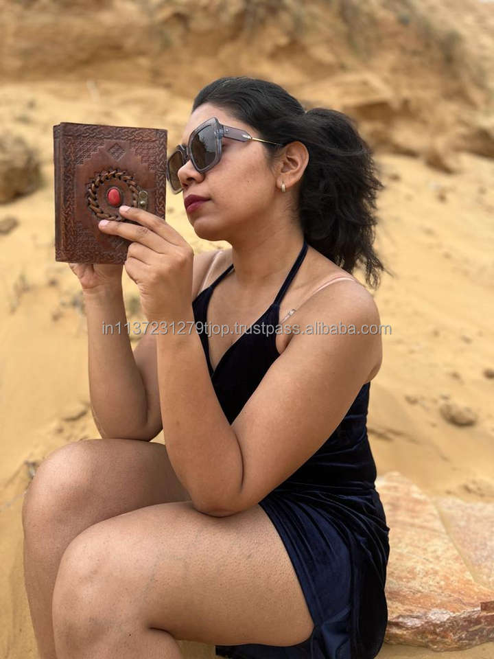 New Real Hand Tooled Leather Clasp Lock Journals With Semi Precious Stone Boho Traditional Vintage Leather Lock Travel Journal