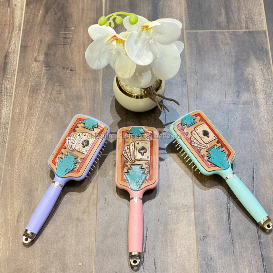 Product name:Hand Tooled Leather Turquoise Cowgirl Hair Brush Comb
