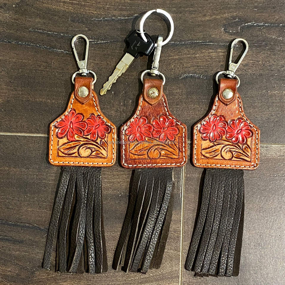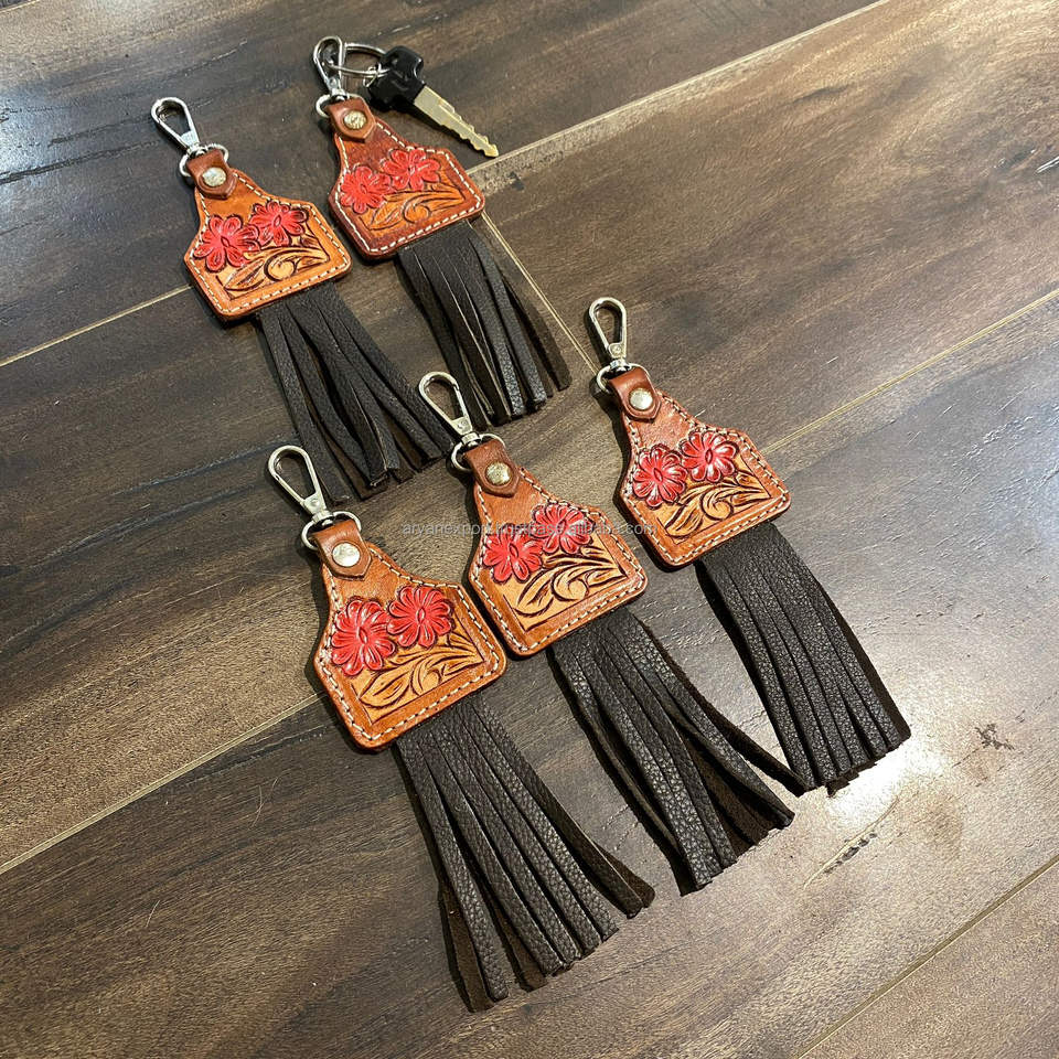 Product Name:Tooled Leather Cute Charming Tassel Keyrings