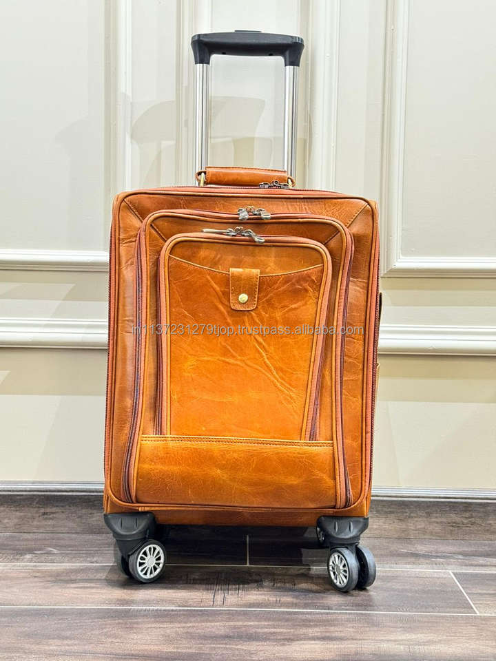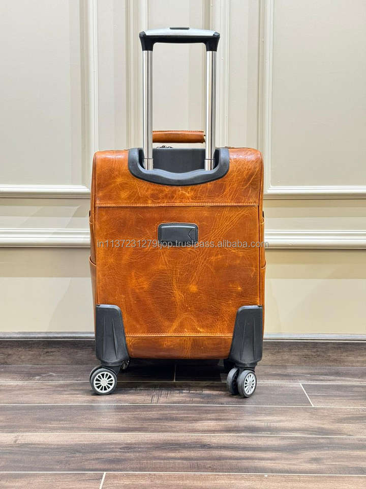 Real Full Grain Crunch Leather Luggage Trolley Suitcases