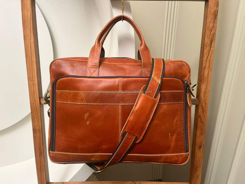New Real Handmade Full Grain Genuine Leather Messenger Bag Laptop Case File Holder Office Bags Unisex Crossbody Shoulder Bag