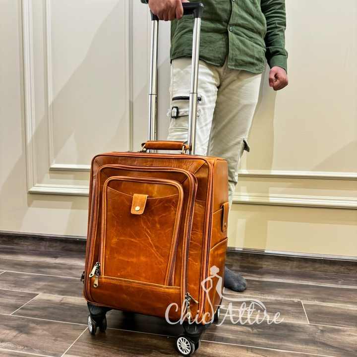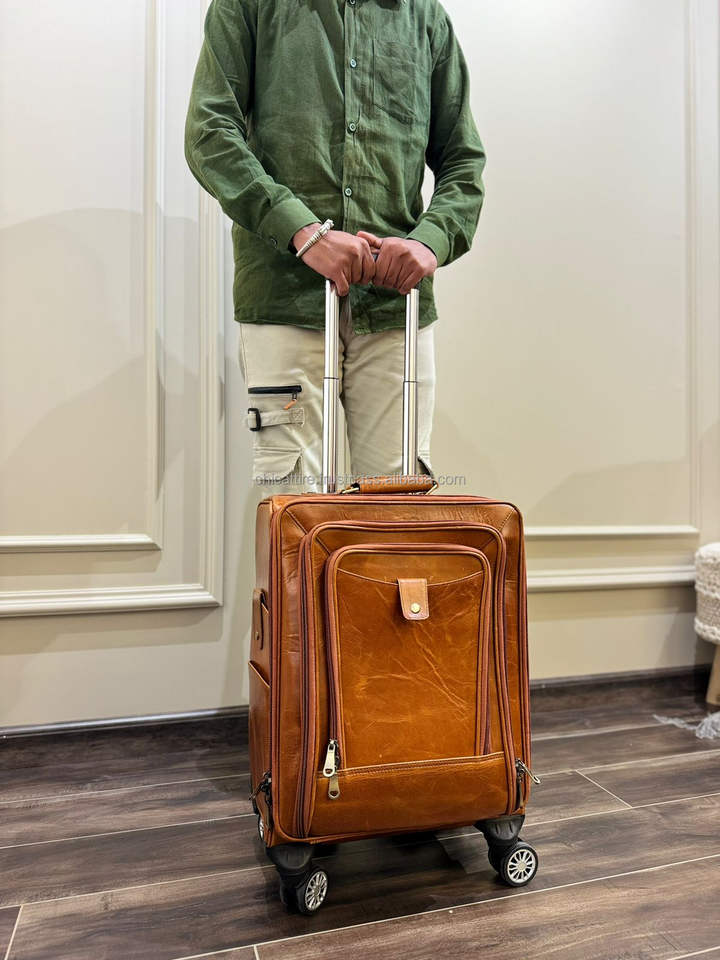 Product name:Real Full Grain Crunch Leather Luggage Trolley Suitcases