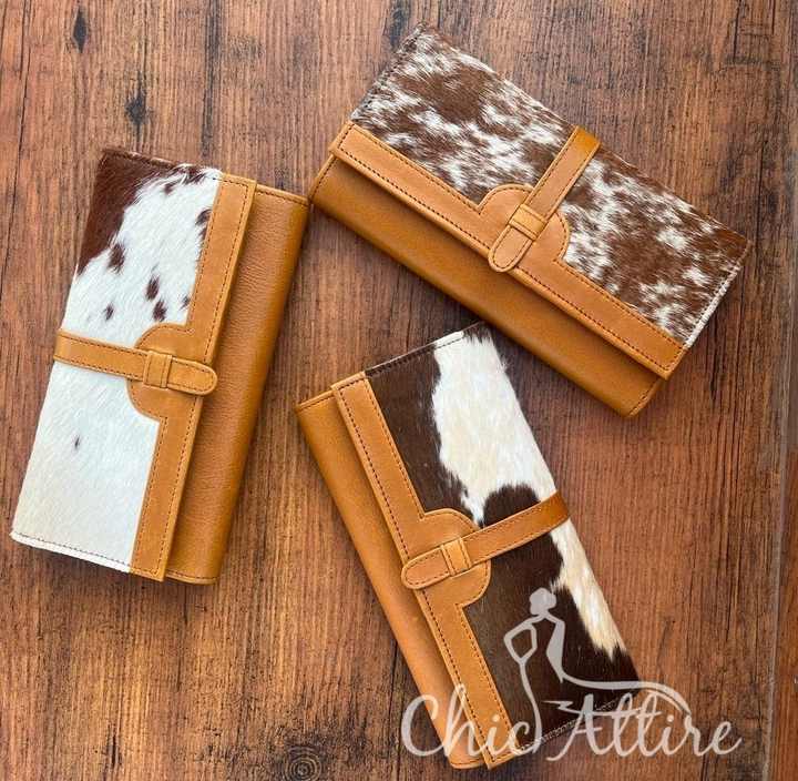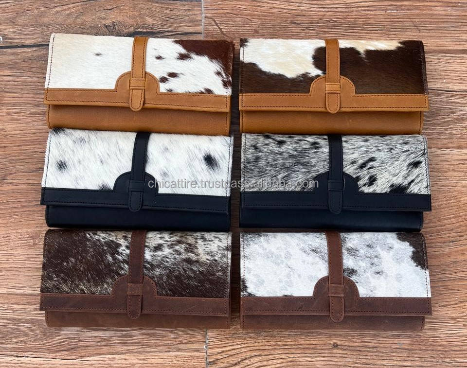 Western Pattern Cowhide Fur Leather Clutch Purse Pouch Wallet Brown Color Hot Sale Hair on Hide Fur Leather Wallet Gift Women's