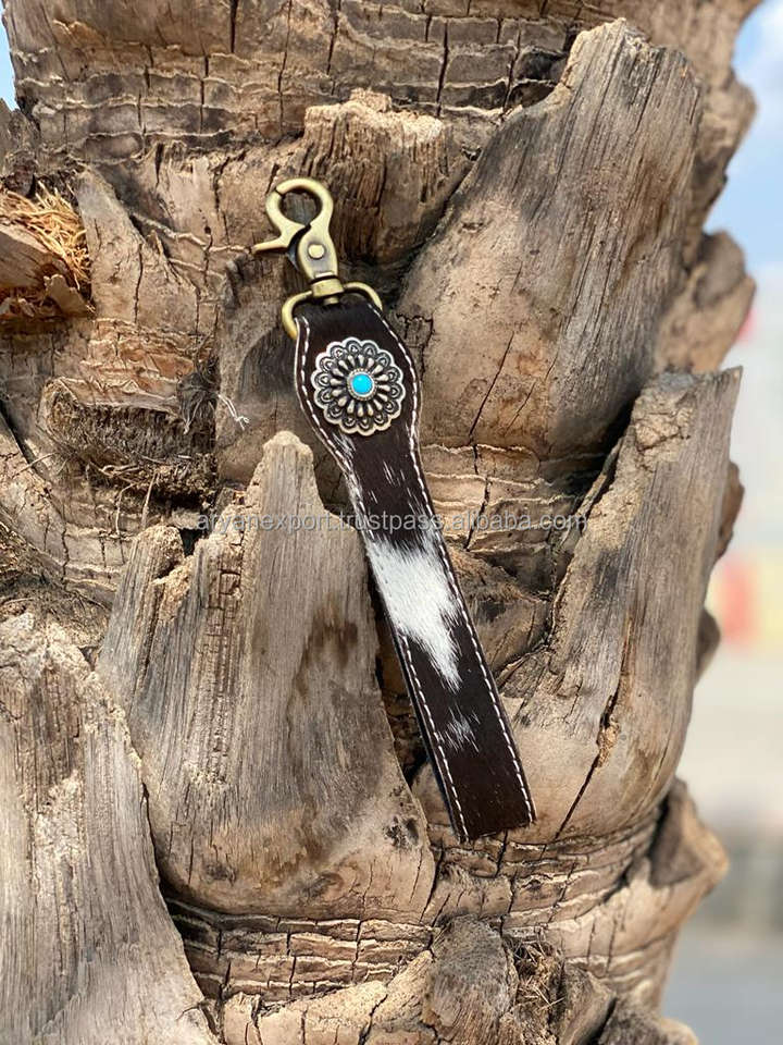 New Real Handmade Genuine Cowhide Leather Cute Charming Wristlet Shape Keyring Western Style Accessory Cowgirl Wristlet Keychain