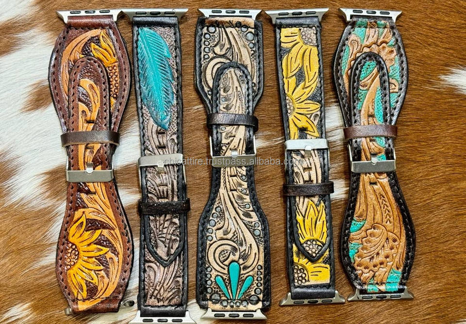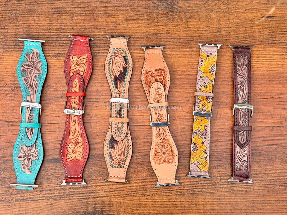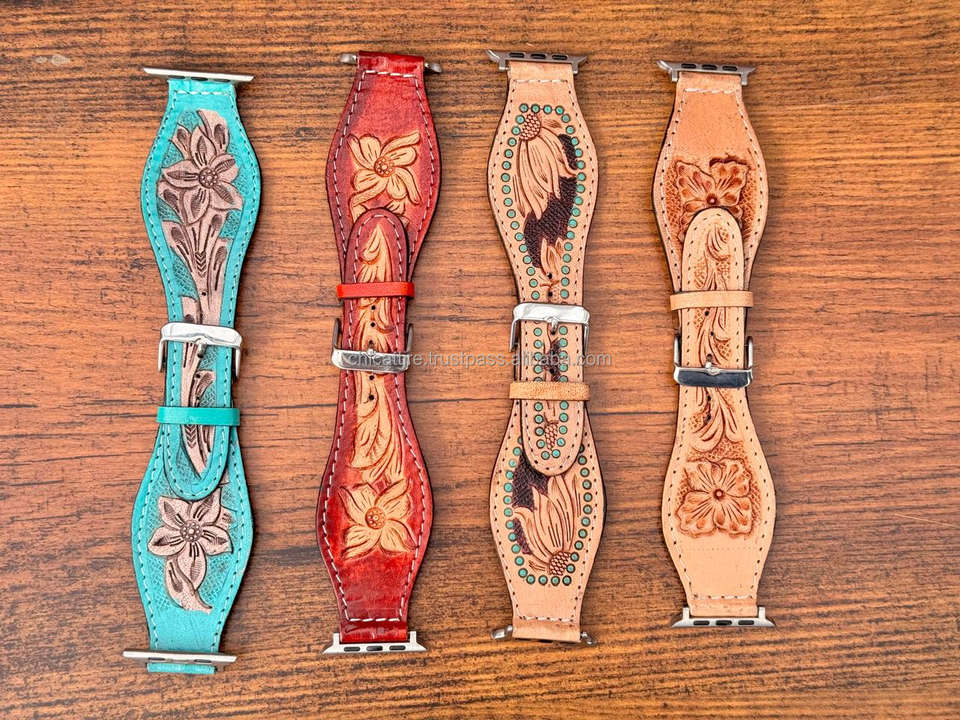 Product name:Tooled Leather Turquoise Flare Watch Hand Band