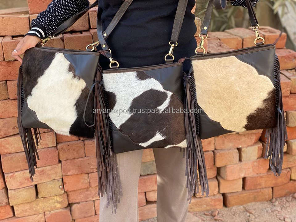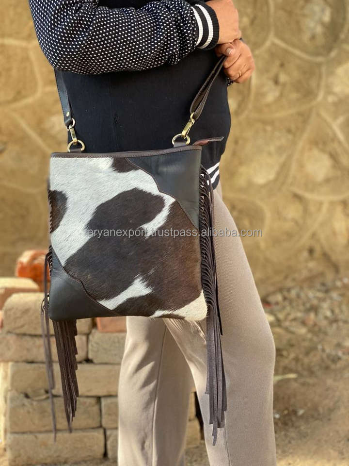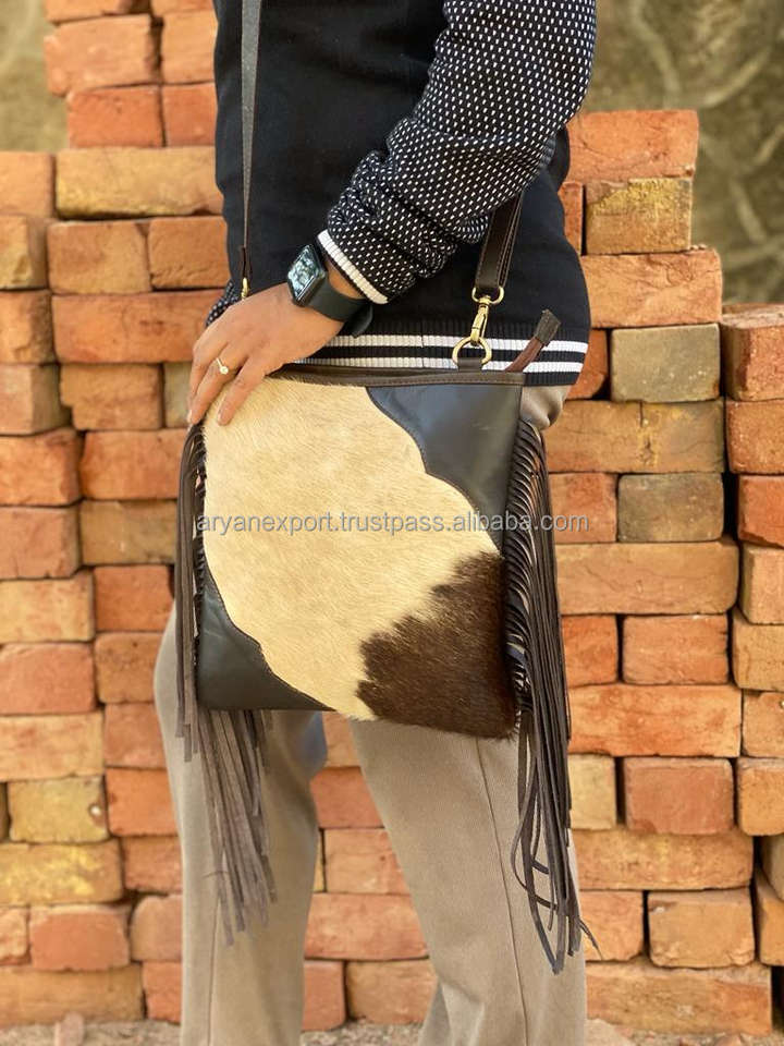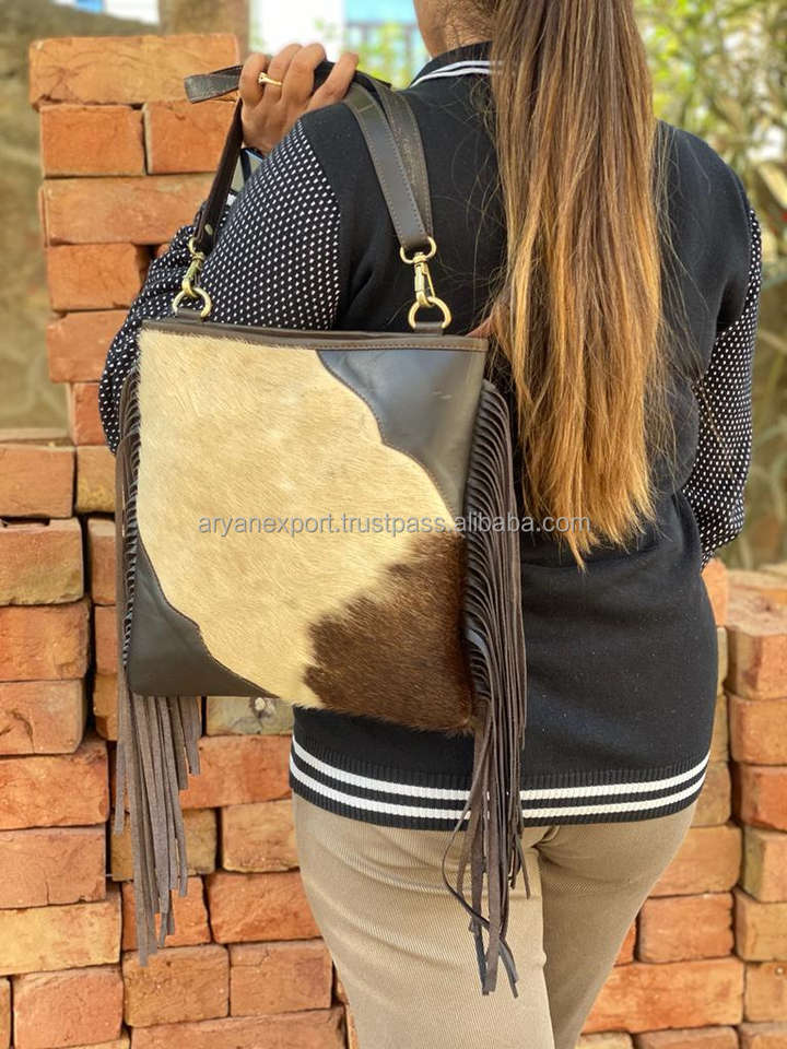 New Real Handmade Hair On Hide Fur Fringe Bag Stylish Women Tassel Leather Fringe Bags Cowhide Fur Leather Bohemian Shoulder Bag