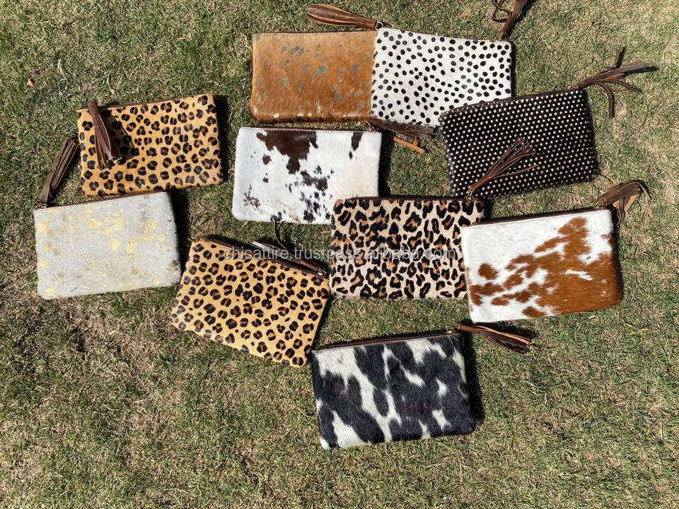 New Real Handmade Hair on Hide Animal Print Fur Leather Tassels Pouch Unique Personalized Fur Leather ATM Card Holders Wallets