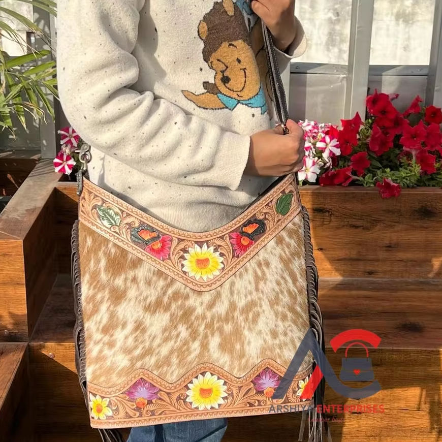Product name:Fashionable Tooled Cowhide Fur Leather Tassel Bags