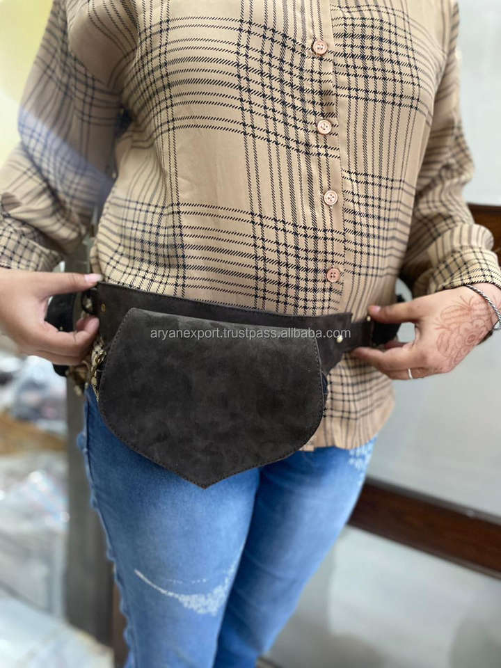 New Real Handmade Suede Leather Multi Pockets Waist Hip Bags With Adjustable Strap Stylish Unisex Leather Utility Fanny Packs