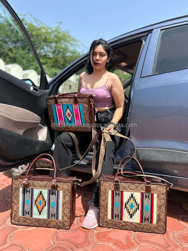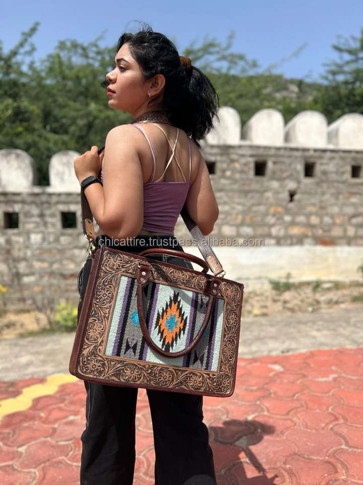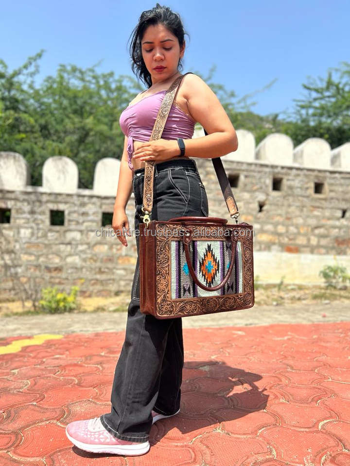 Product name:Designer Tooled Aztec Leather Tote Bags