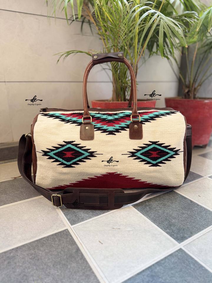 New Real Handmade Vintage Style Aztec Tooled Leather Duffel Bags Western Pattern Genuine Leather Large Travel Bags Multi Uses