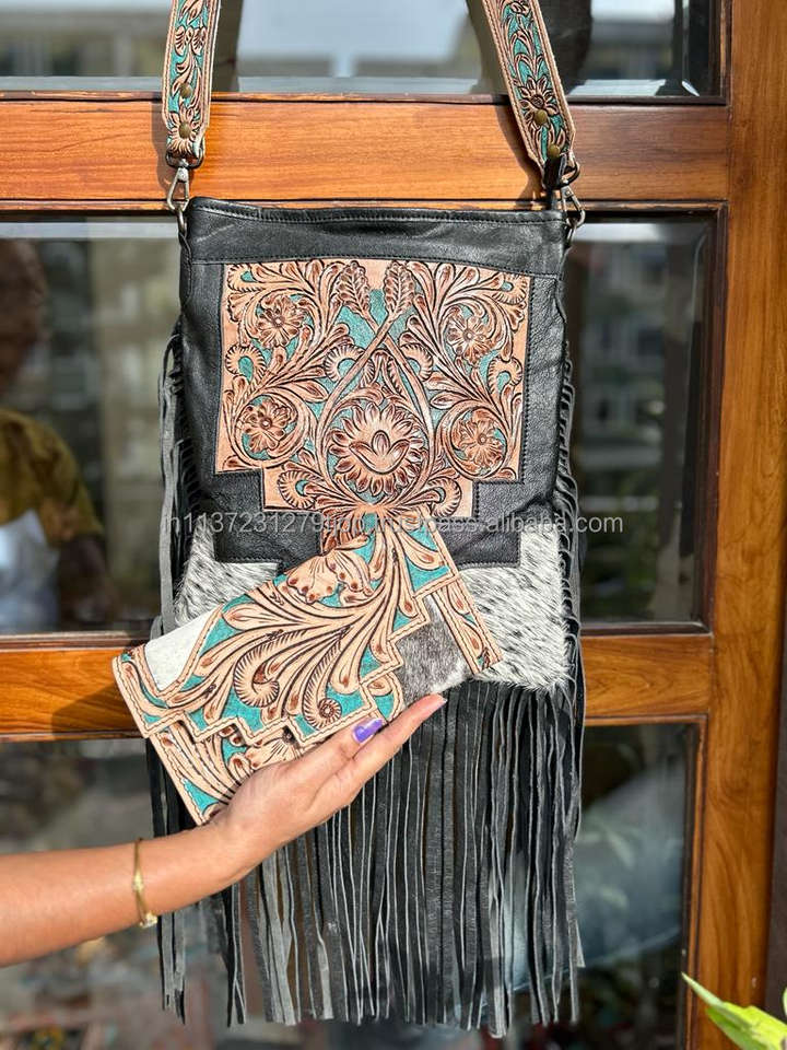 Type:Tooled Fur Leather Handbag & Clutch Combo Set