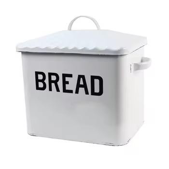 New Rectangle Shape White Coated Metal Bread Box Modern Design Storage Container for Kitchen Accessories and Bakery Usage Item