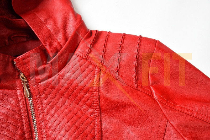 New Red Black Hoodies Leather Jacket Women Autumn Washed PU Jacket Plus Zippers Jacket by MAXFIT ENTERPRISES