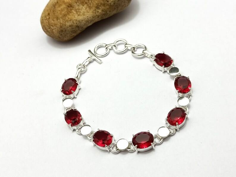 New Red Garnet Stone Handmade Silver Plated Bracelet Unique Jewelry Gift For Women Elegant Garnet Bracelet
