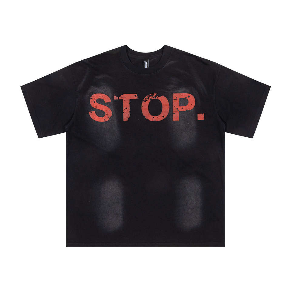 New Retro High-End Men's Short-Sleeved T-Shirt Streetwear Style Drop Shoulder Sleeveless Design Screen Printed Bamboo Material