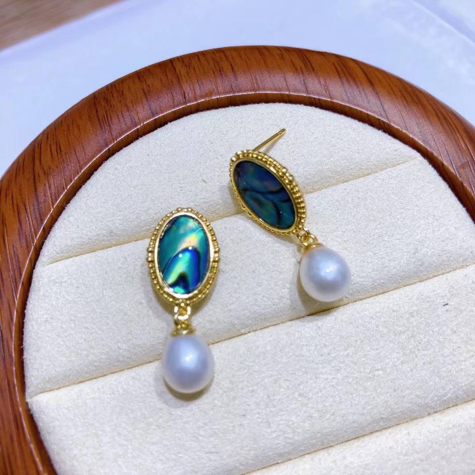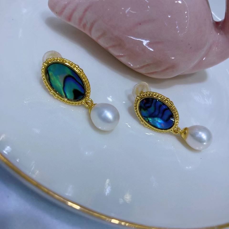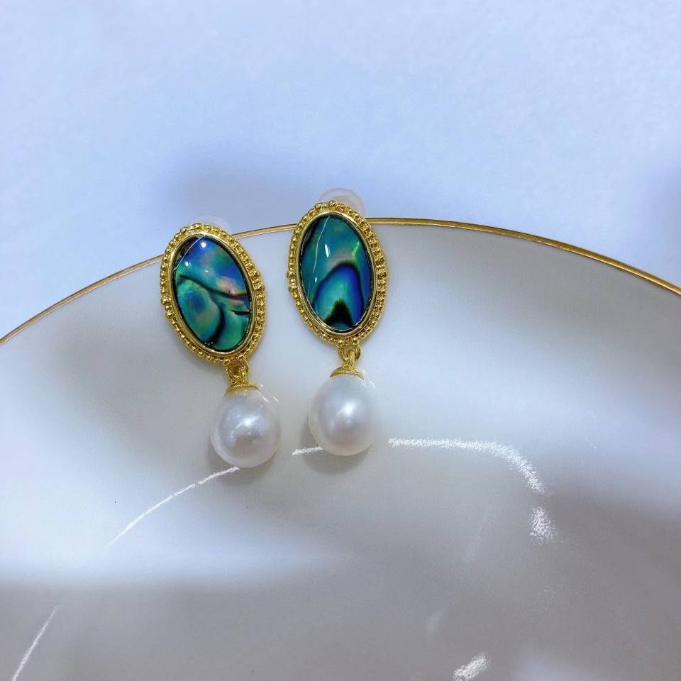 New Retro Luxury Abalone Shell Earrings Natural Large Freshwater Pearl Rice Shaped Dangle Jewelry