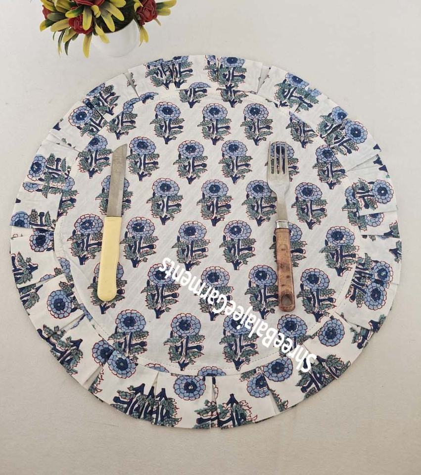 Modern Reversible Floral Hand Block Print Placemats for Dining Table Disposable Banquet Home Kitchen Wedding Events Frill Decor