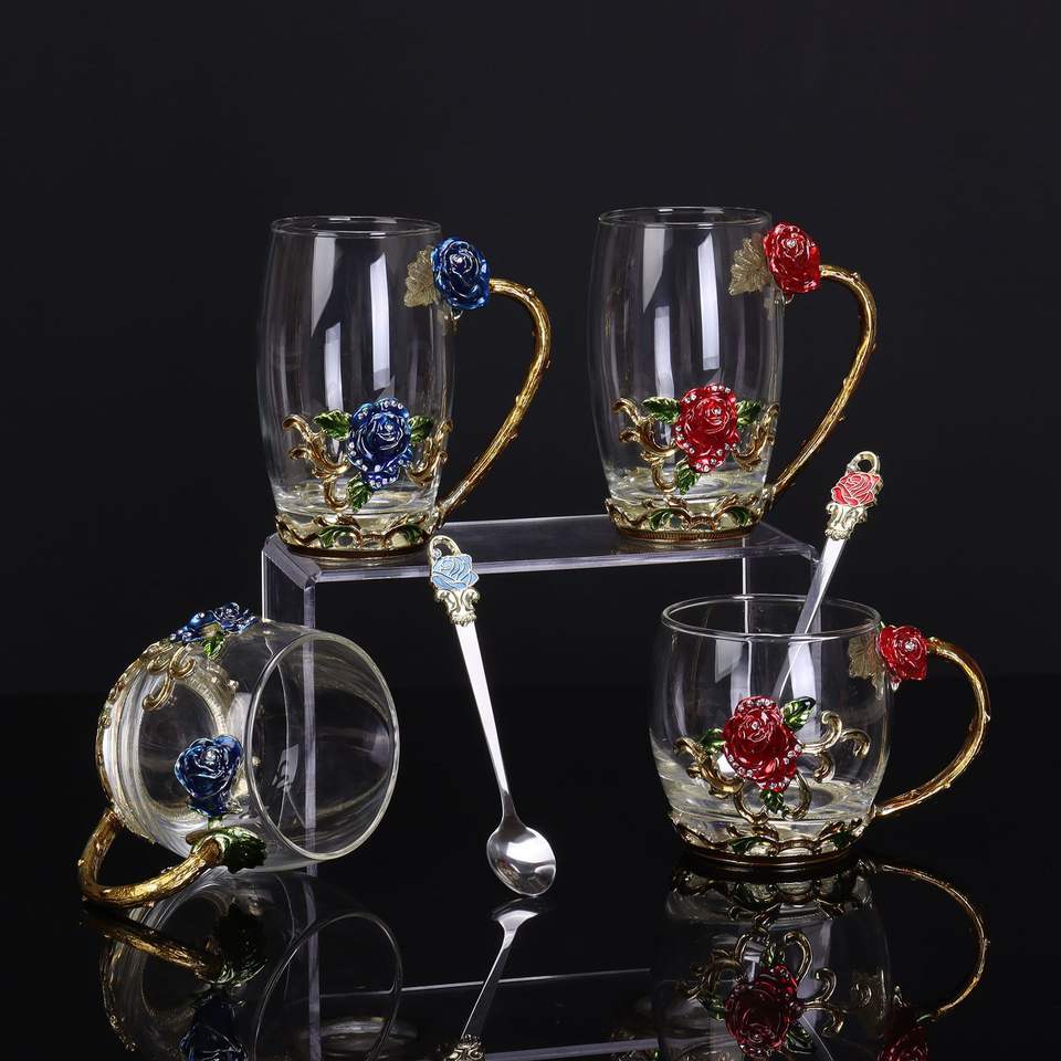 New Rose Cup Household Cup Set Enamel Color Water Cup High-temperature Resistant Glass
