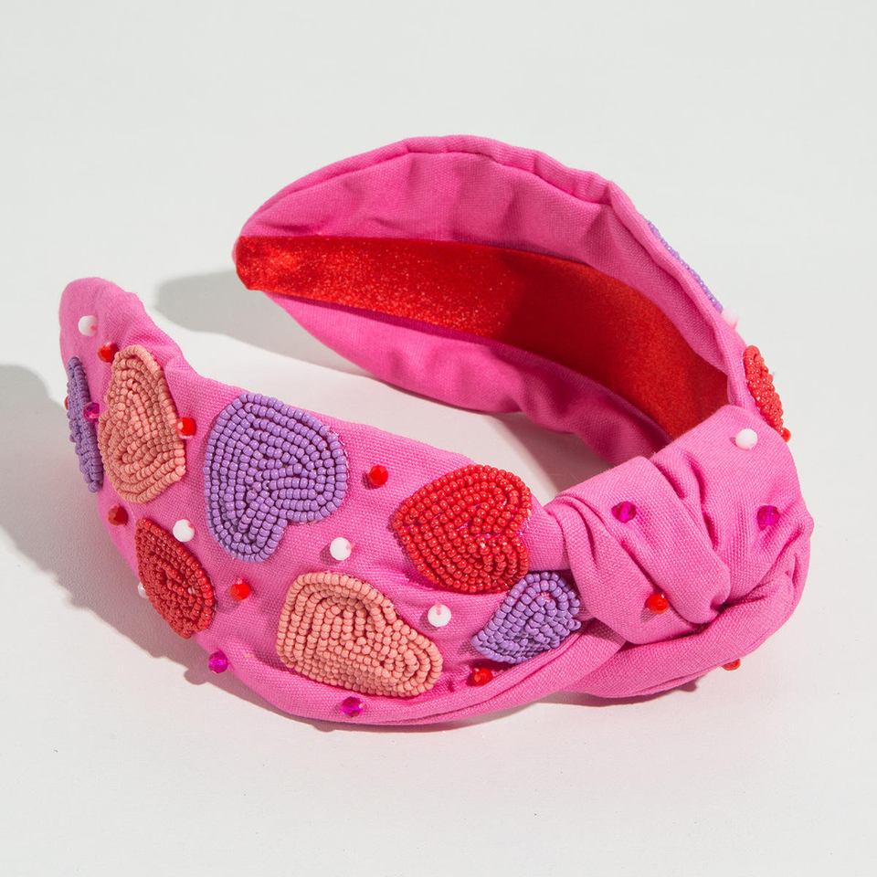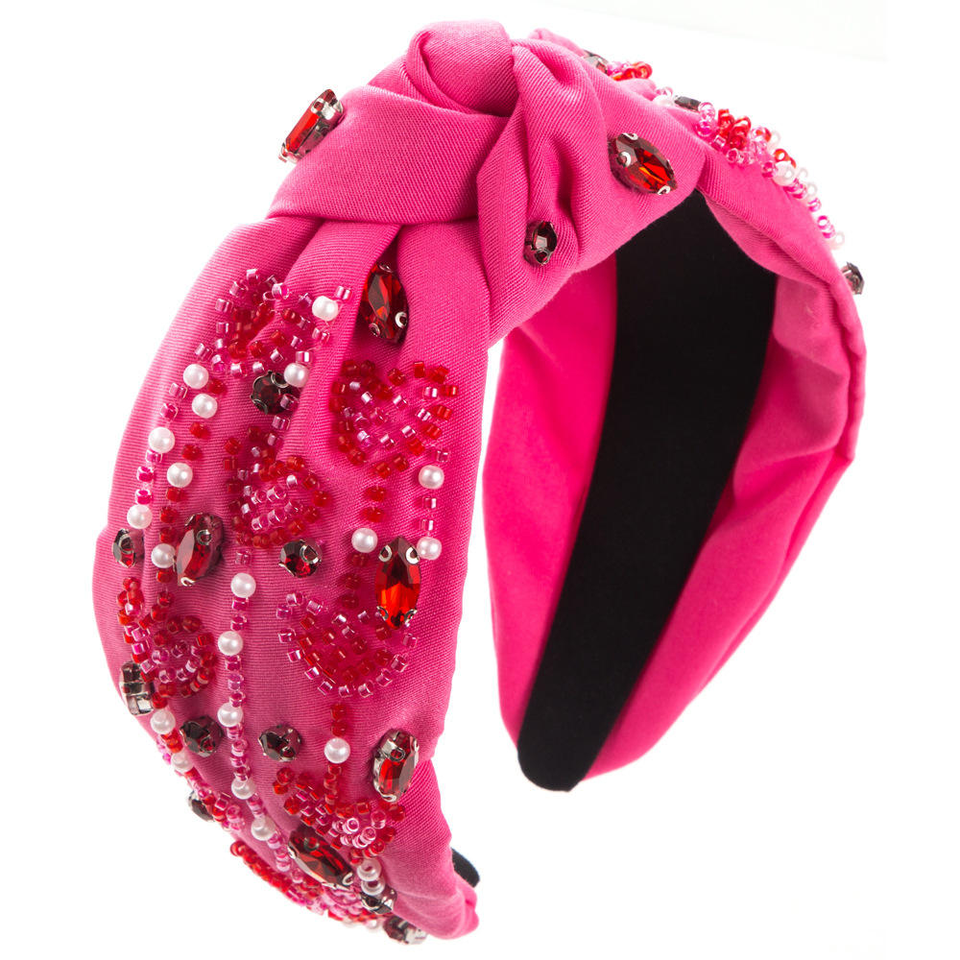 New Rose Red Hot Pink Wide Edge Knotted Beaded Headband Hand-Sewn Rice Beads Pearl Hair Accessories