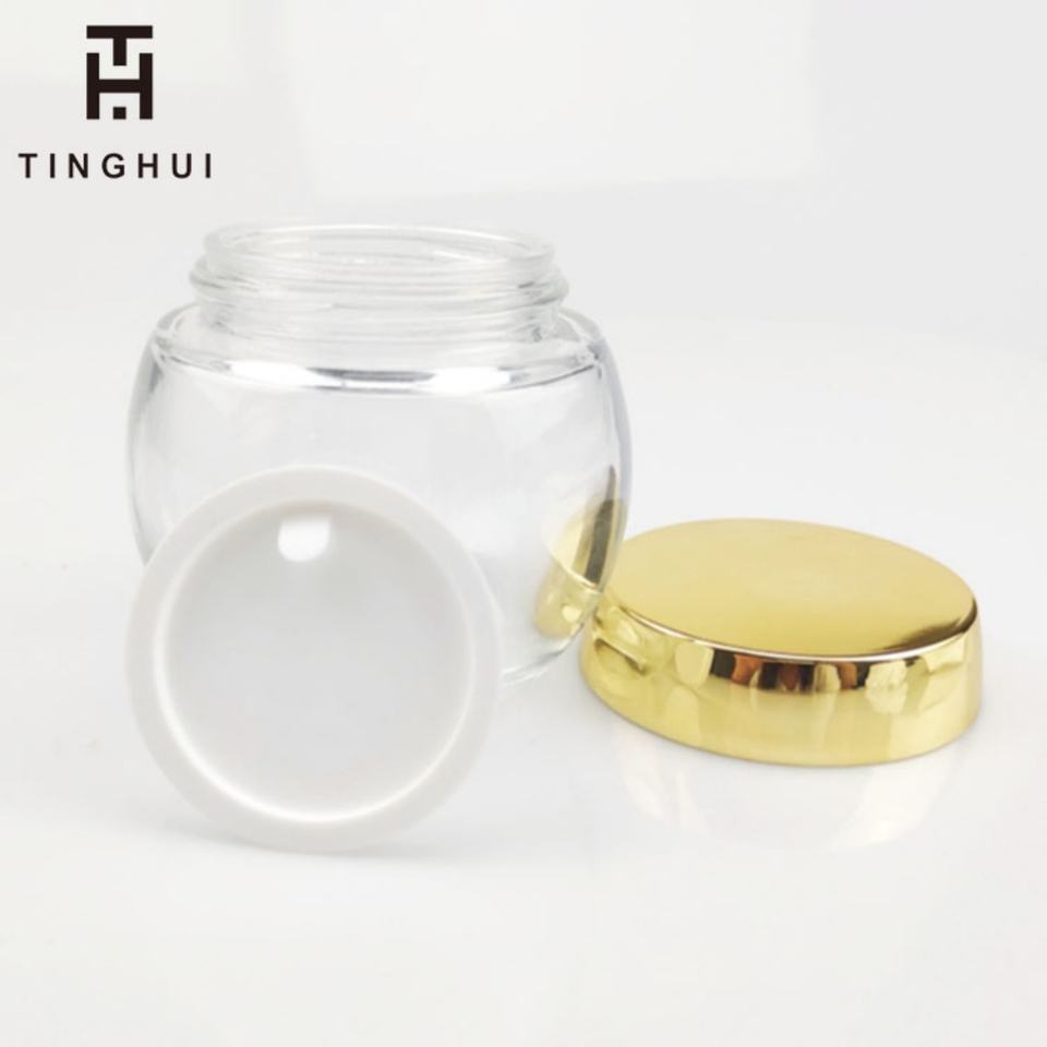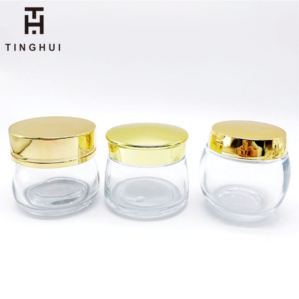 New Round Fat Belly Shaped Glass Frosted Facial Cream Jar Gold Cap Matte Clear Skincare Cosmetic Lotion Scrub Cream Glass Jar