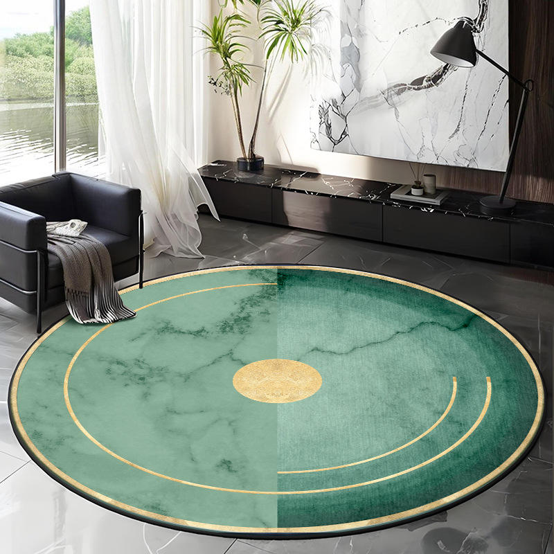 New Round Living Room Rug Green Abstract Crystal Velvet Stain Resistant Floor Mat Home Decor Area Rug