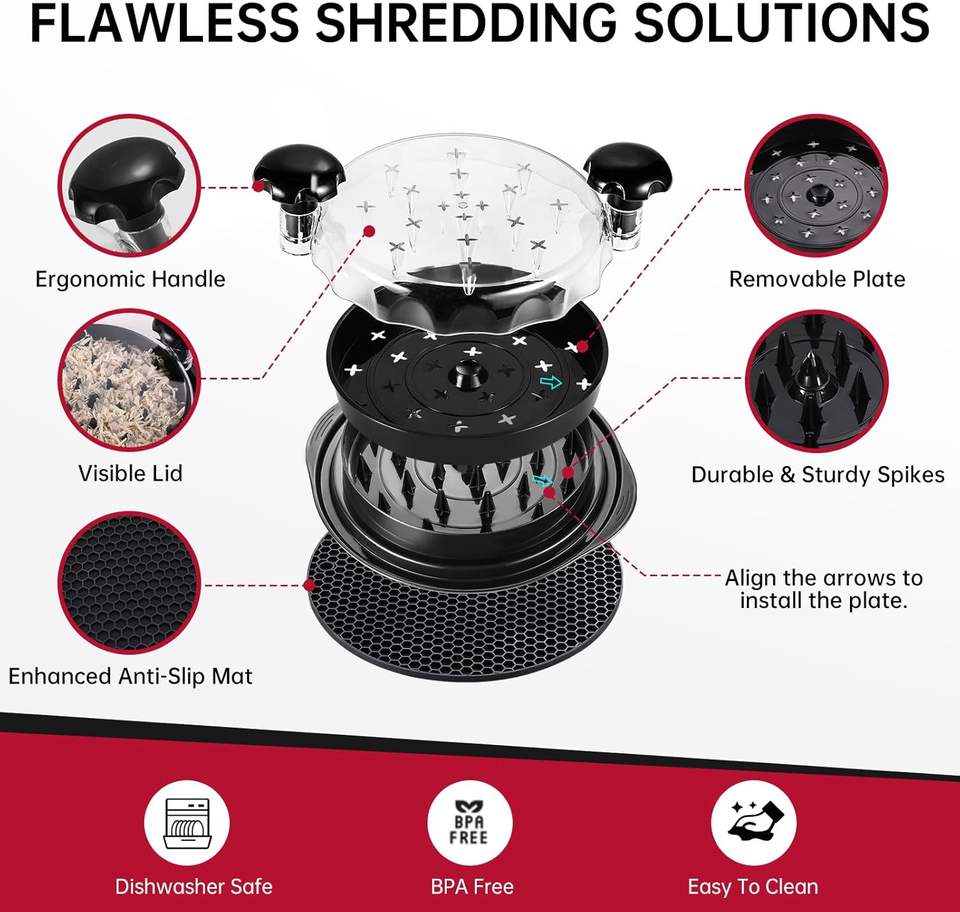 New Round Plastic Manual Cooked Pork Shred Meat Shredders Bbq Tool Non Slip Chicken Shredder With Suction Cup for Kitchen