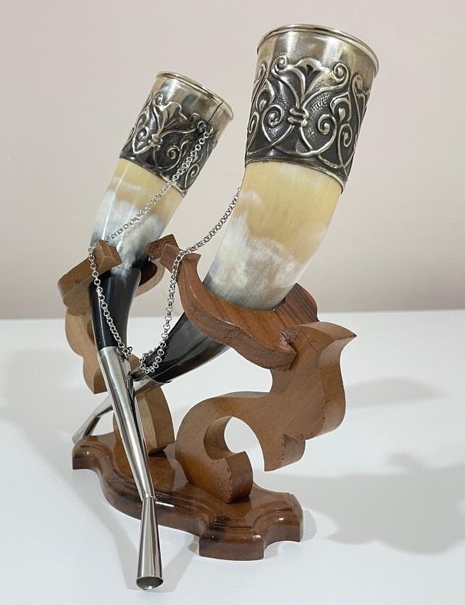 New Royal Handmade Royal Home Decor Horn With Brass Decoration Mugs Most Popular Horn Natural Color Horn Decorative Beer Mug
