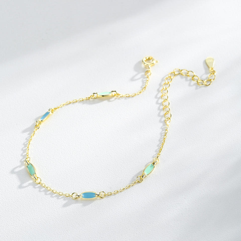 New S925 Sterling Silver Colored Enamel Chain Bracelet for Women - Anniversary Gift Customizable copper version