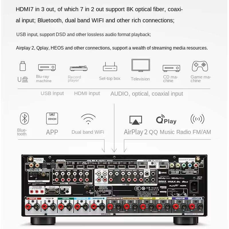 New STOCK DENONN AVR-X4800H 9-4Channel Professional Dolby Atmos High-Power Audio System
