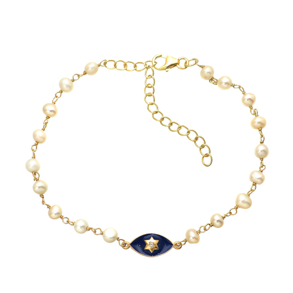 New Sale 925 Sterling Silver Beaded Bracelet with 18K Gold Plating Enamel Star Charm Pearls Trendy Style for Wedding Party Gift