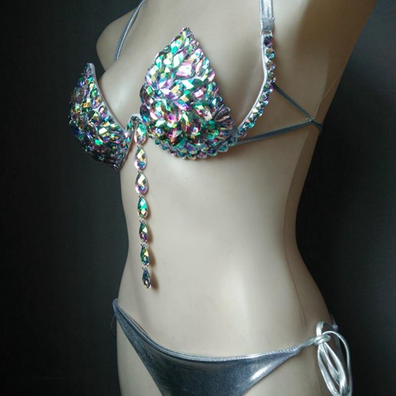 New Samba Carnival Dance Rhinestone Bikini Set High Waist Bra Party Crystal Silver Stone Handmade Crystal Dry Plus Size