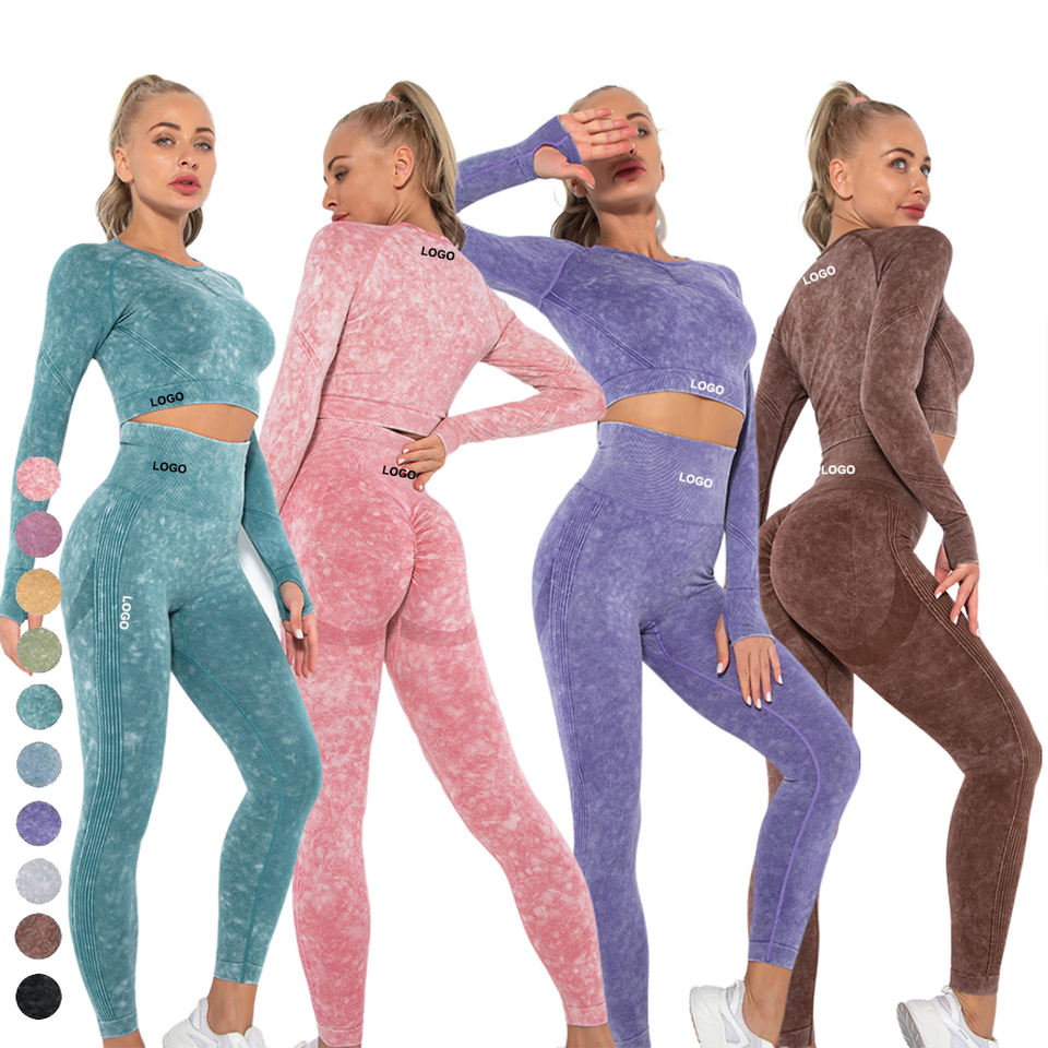 New Seamless Washed Breathable Workout Yoga Suit Women Sports Running Training Long Sleeve High-Waisted Activewear Leggings