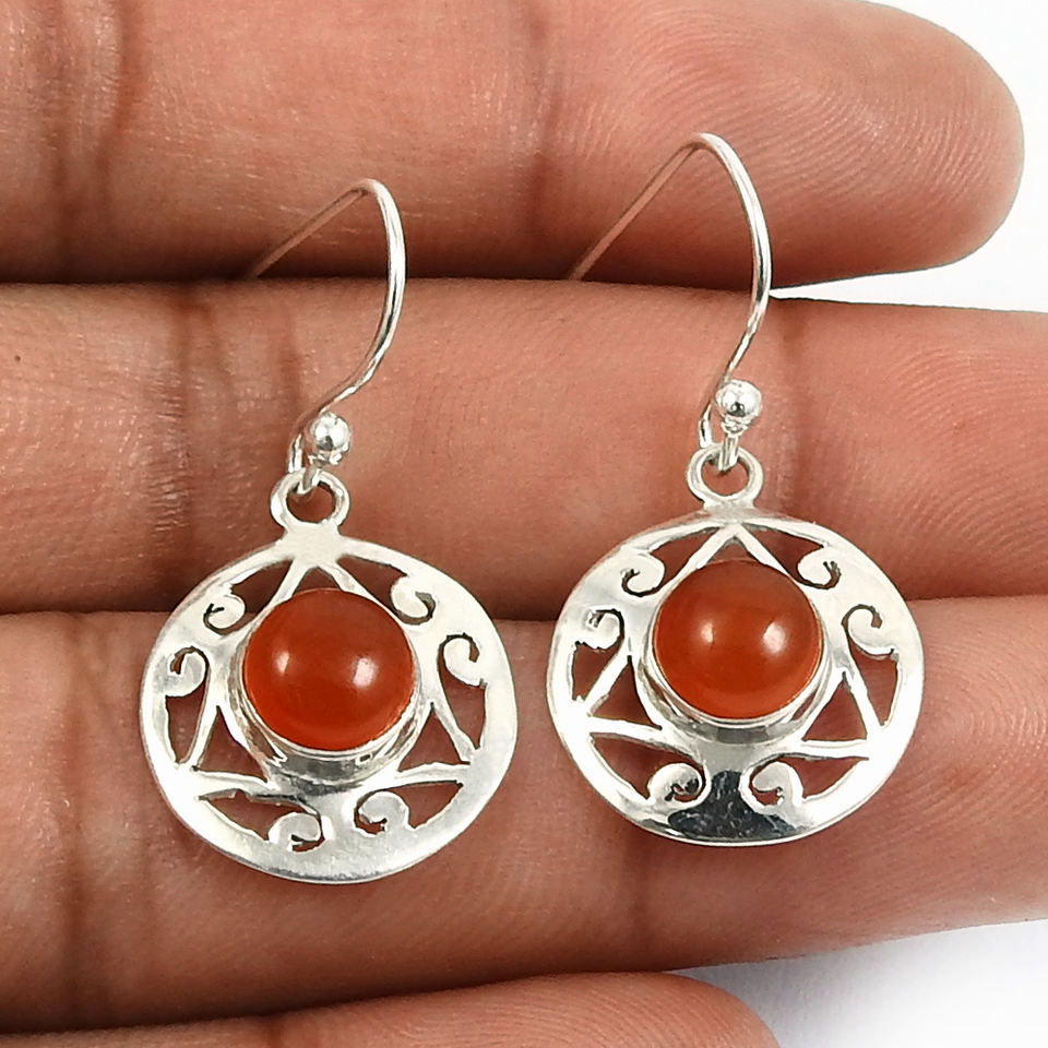 New Selling Fine Jewelry 925 Sterling Silver Natural Red Garnet Gemstone Round Shape Classic Dangle Earrings for Woman Girls