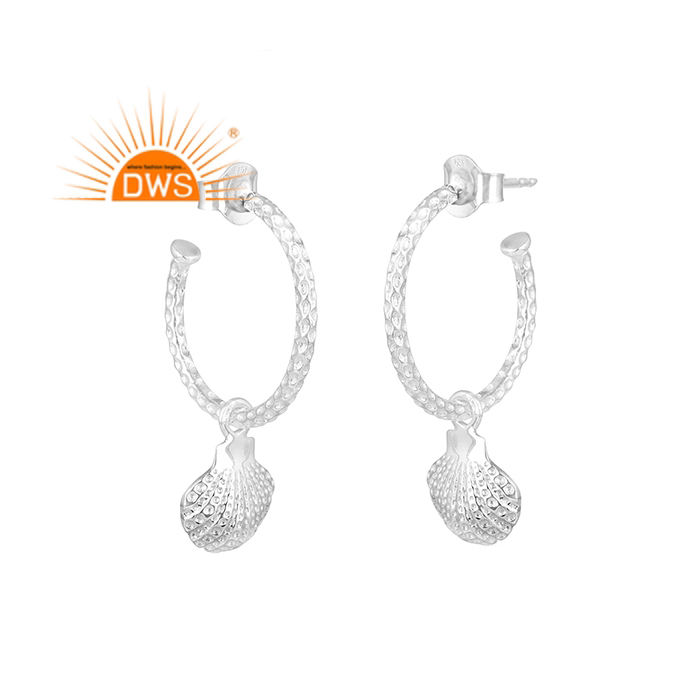 New Shell Design Earrings Textured Silver Jewelry Wholesale Designer 925 Sterling Silver Hoop Earrings Vintage Collection