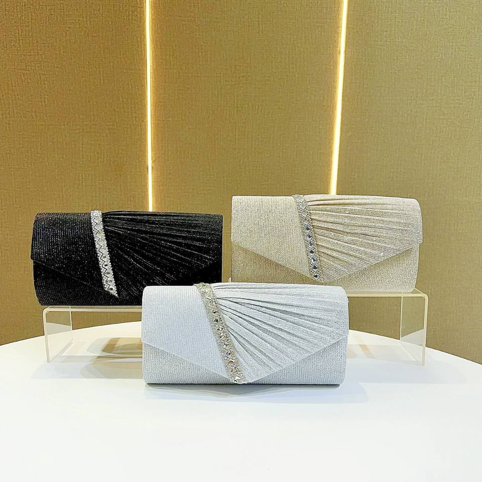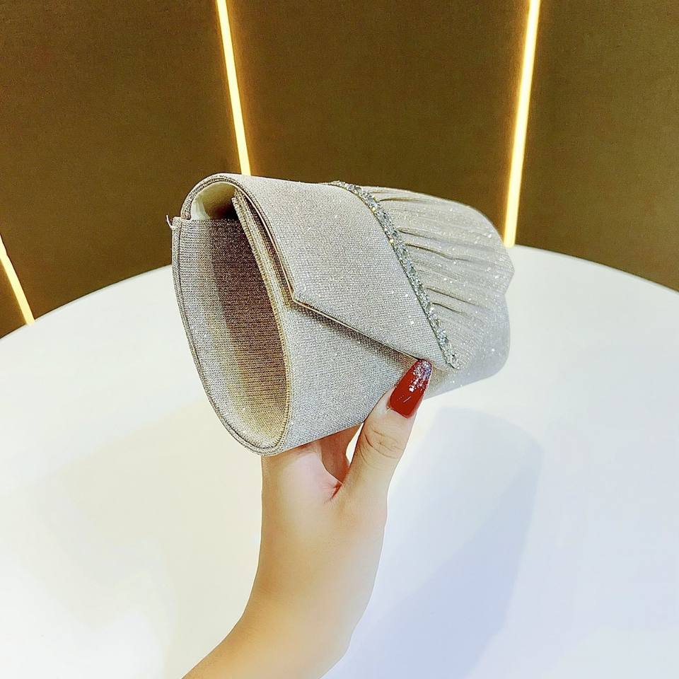 New Shiny Rhinestone Small Envelope Evening Hand Bag for Women Polyester Material Magnetic Closure Princess Dress Style Tanjing