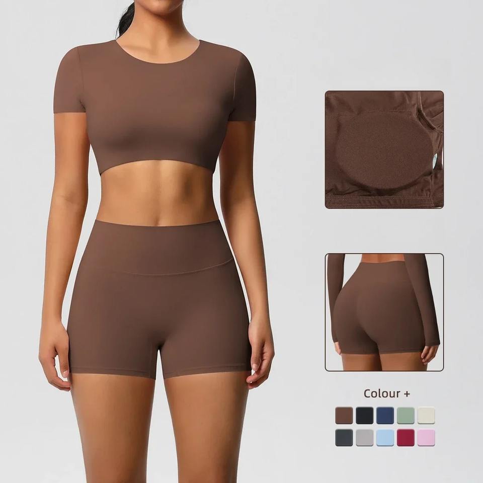New Short Sleeves Wholesale Workout Tracksuit Top Quality Slim Fit Women 2 Piece Set Casual Design Gym Yoga Set