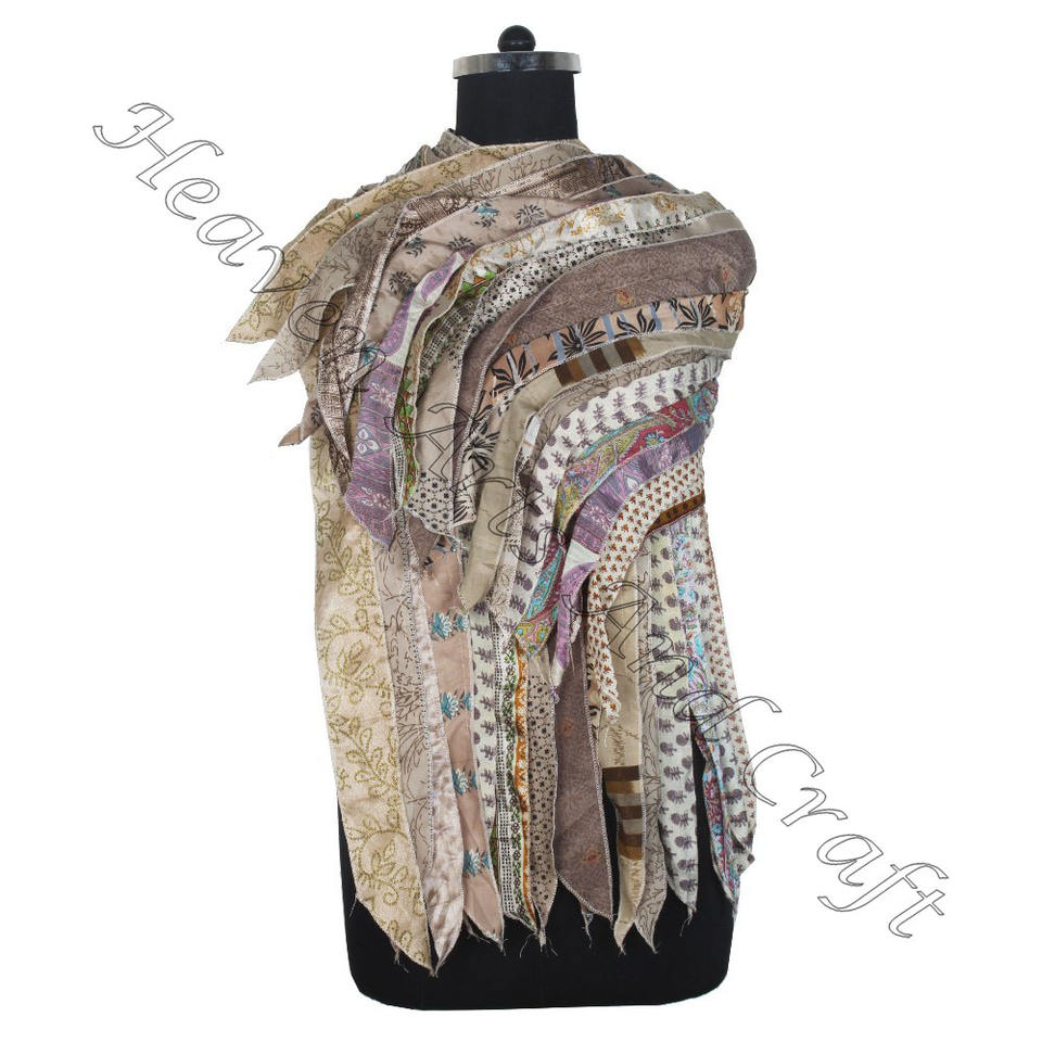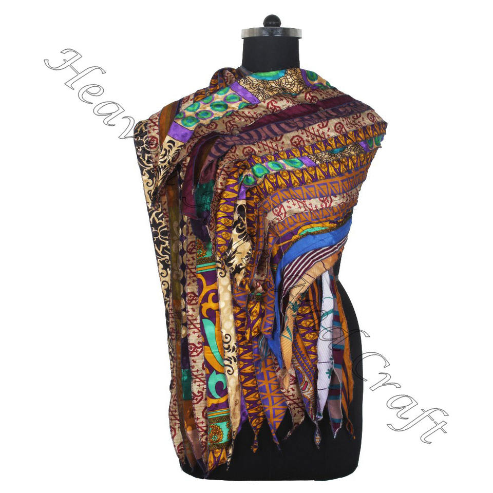 New Silk 15 Strips Beautiful Very Soft Scarf Recycled Wholesale Manufacturer From India Sari Patches Reversible Scarf Colorful