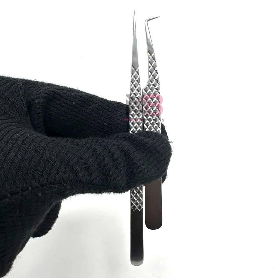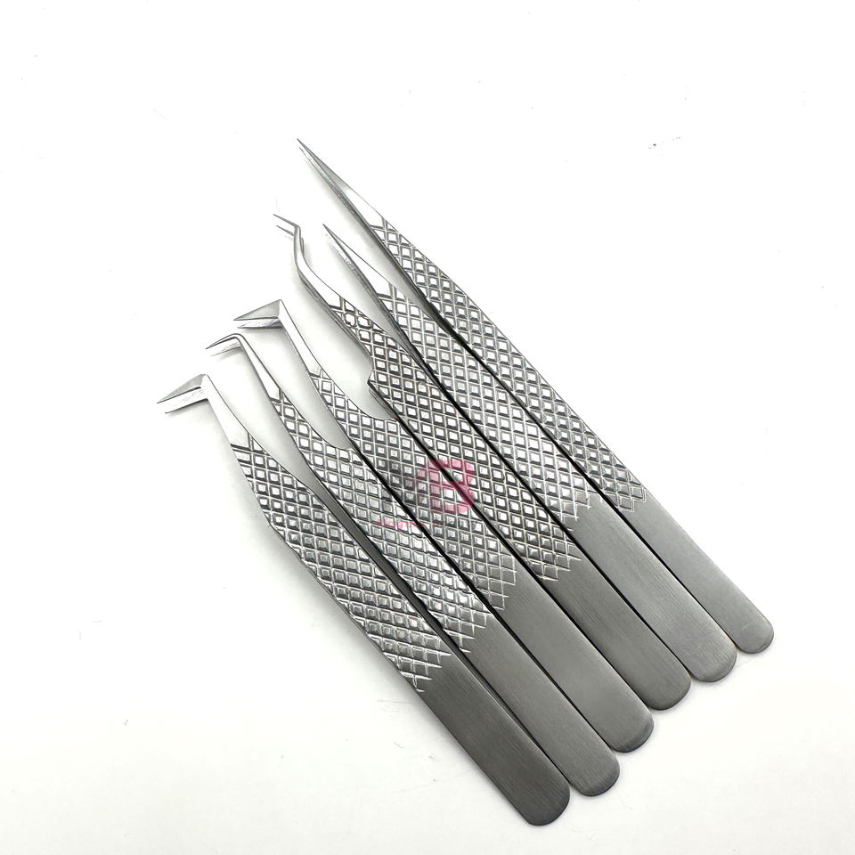 New Silver Polish Stainless Steel Lash Extension Tweezers Set High Quality Diamond Grip Eyelash Tweezer Logo Sustainable