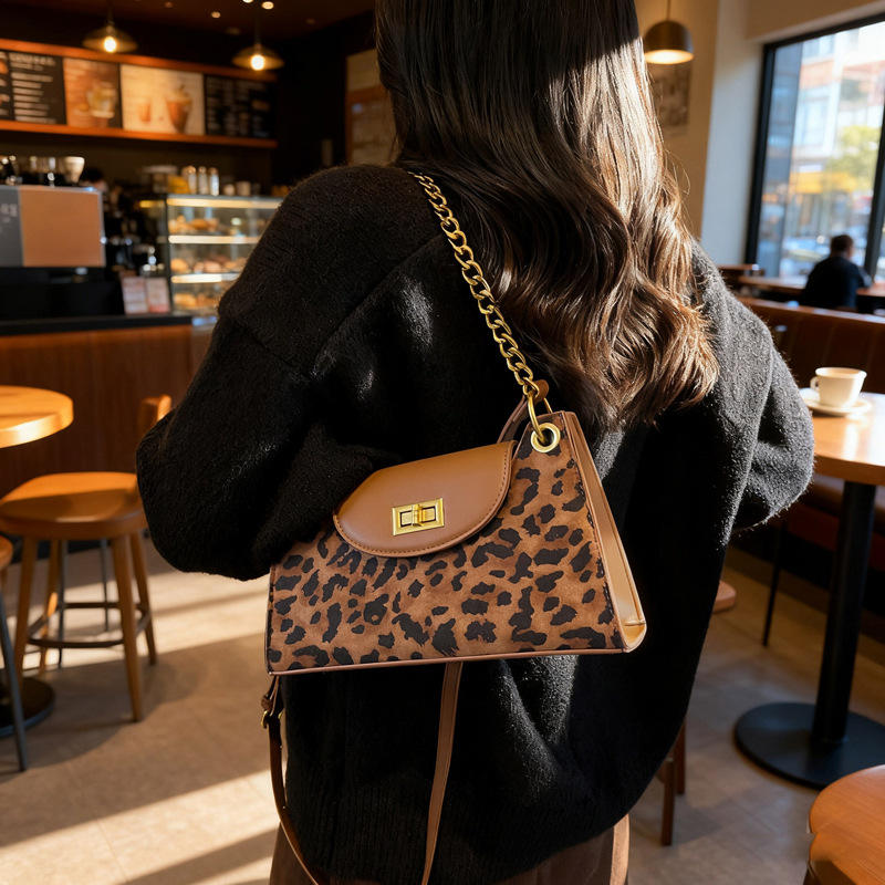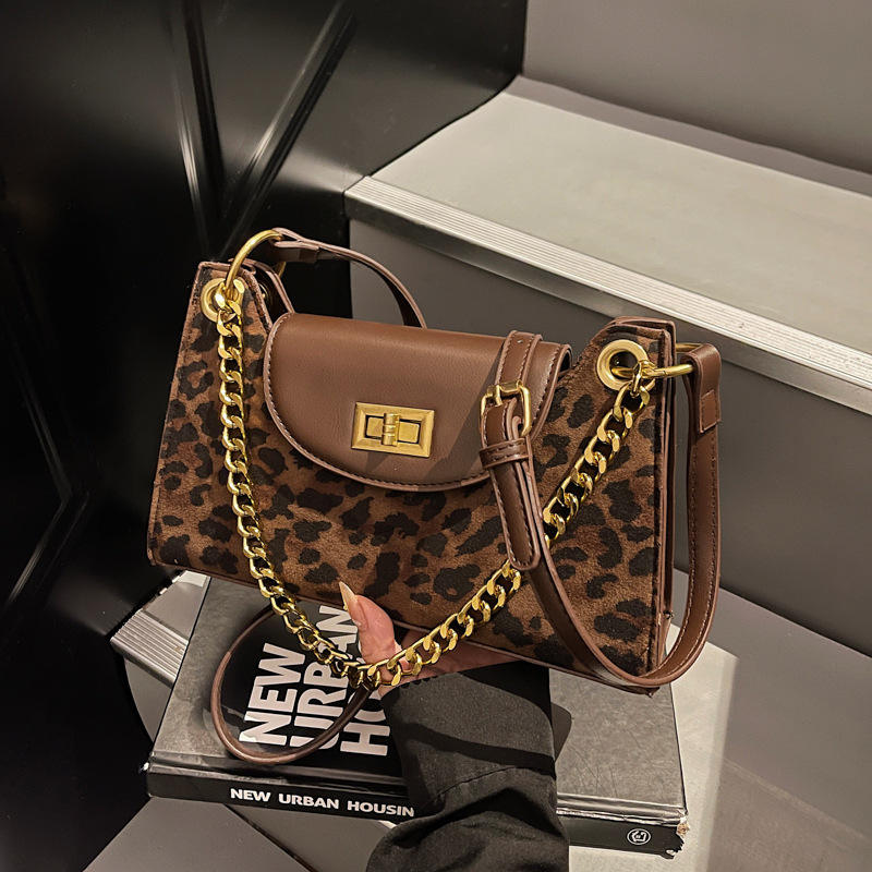 New Single-shoulder Crossbody Bag with Leopard Print 2026 Fashion Versatile Chain Buckle and square Shape Women's Tote Bags