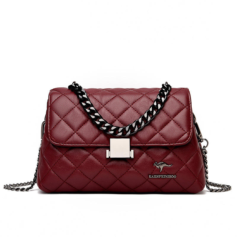 New Small Square Diamond Lattice Bag Pu Solid Zipper Fashion Single Shoulder Messenger Bag with Chain Ladies Handbag