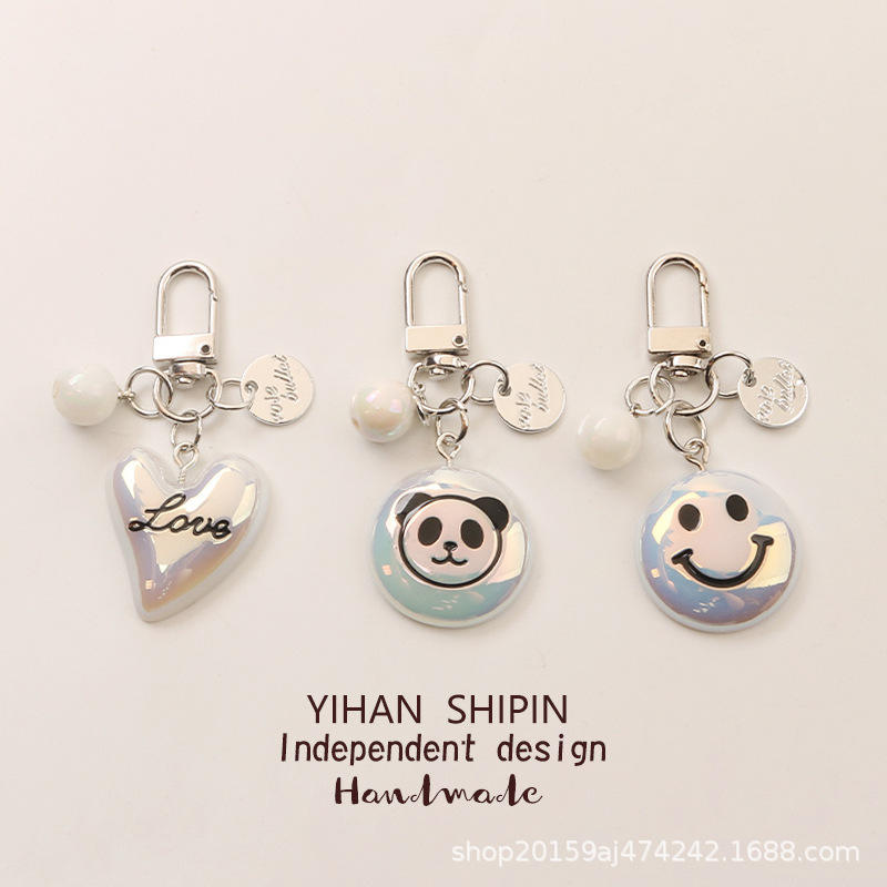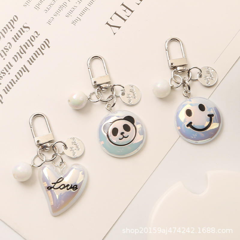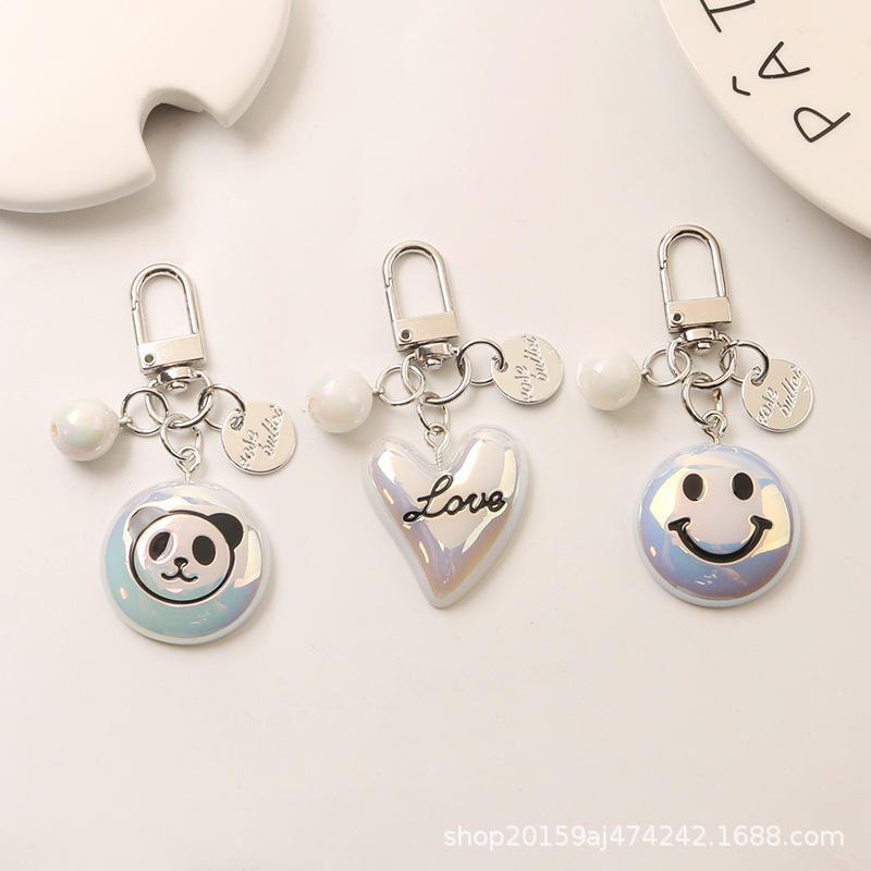 New Smiley Face Alloy Keychain Creative Cute Panda Heart Accessories Earphone Case Women Bag Decoration